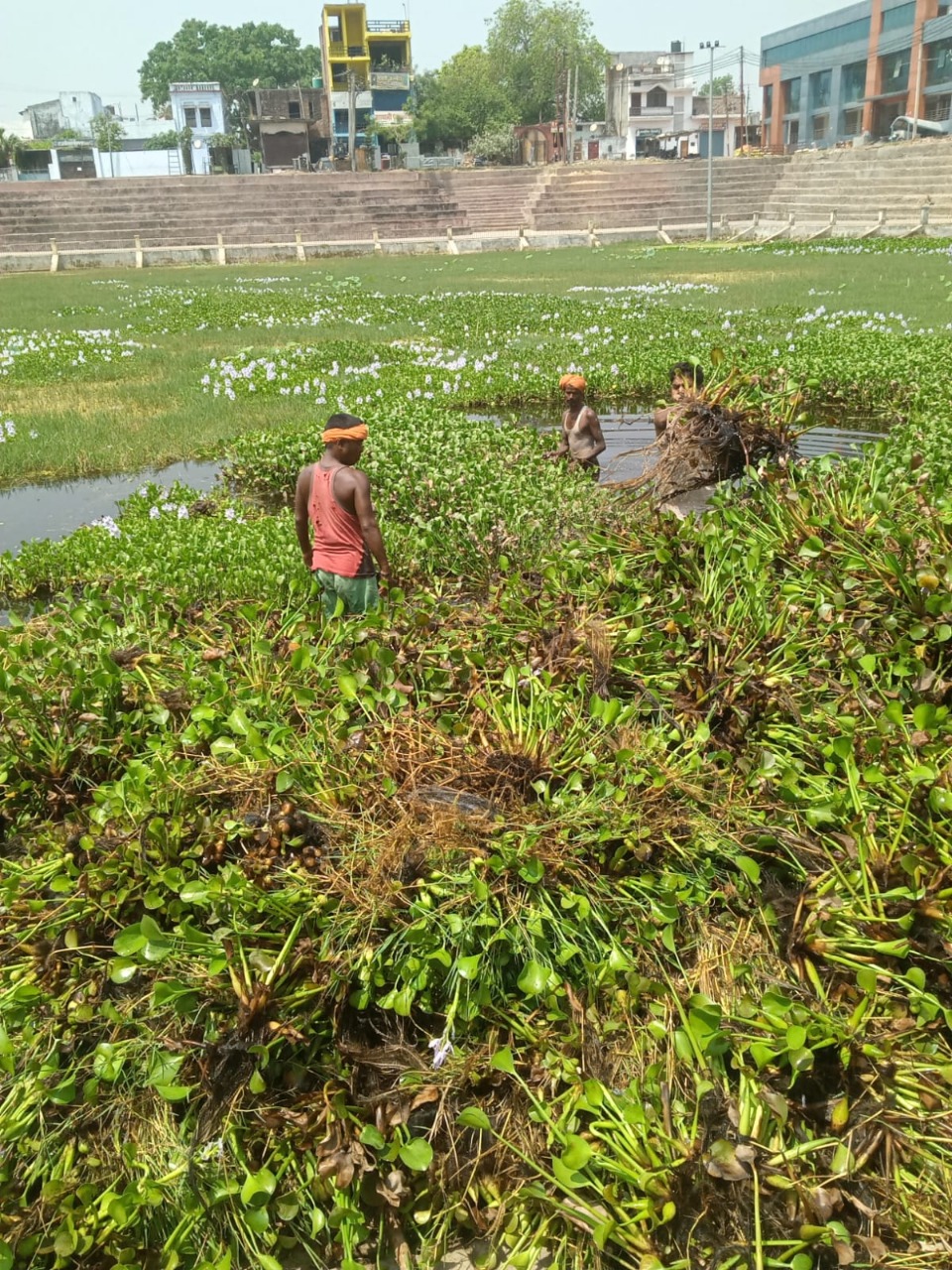 गोण्डा ! डीएम डाॅ0 उज्ज्वल कुमार के निर्देश पर नगर के प्रतिष्ठित राधाकुण्ड की सफाई का कार्य तेजी से कराया जा रहा है। नगर मजिस्ट्रेट अर्पित गुप्ता की अगुवाई में नगर पालिका की टीम राधाकुण्ड में साफ-सफाई का काम कर रही है।