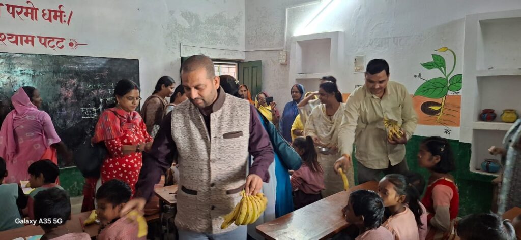 इसी के साथ यहां भी केला, बिस्किट, पेंसिल रबर का वितरण किया गया ।।