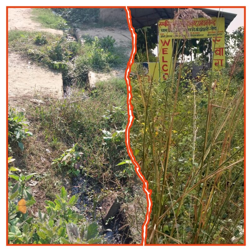 हर जगह कूड़े का अम्बार लगा दिखाई देता है, प्रधान राजेश वर्मा और सफाईकर्मियों के नकारेपन का जीवंत प्रमाण गाँव में बना अपशिष्ट प्रबंधन केंद्र भी देता है कहने को तो केंद्र का निर्माण करा दिया गया लेकिन उसका ताला शायद ही कभी खुला हो क्योंकि केंद्र तक जाने का रास्ता ही नहीं है, रास्ते पर उगी लम्बी झाड़ियों बता रही है की इन रास्तो पर वर्षो से कोई नहीं आया।