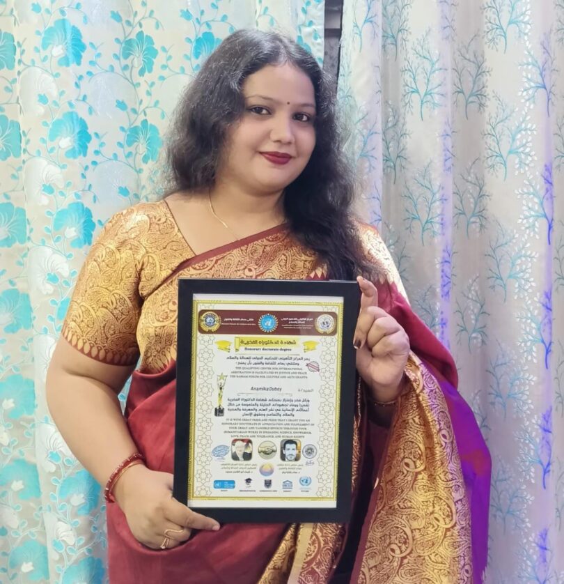 मुंबई। महाराष्ट्र की युवा कवयित्री एवं साहित्यकार विजय प्रकाश दीक्षित की सुपुत्री एवं रत्नेश दूबे की धर्म पत्नि अनामिका दूबे को साहित्यिक, सामाजिक एवं शैक्षणिक क्षेत्र में उल्लेखनीय योगदान के लिए “Bassam Forum for Culture and Arts” & “Rehabilitation Center for International Arbitration for Justice and Peace” के संयुक्त तत्वावधान में डॉक्टरेट की मानद उपाधि से सम्मानित किया गया।