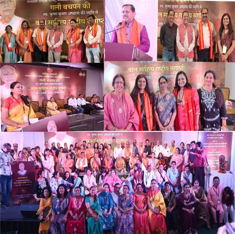 यह विचार विभिन्न वक्ताओं के उद्बोधन का वह सार है, जो उन्होंने भोपाल में बाल साहित्यकार स्व. कृष्ण कुमार अष्ठाना (सम्पादक- देवपुत्र) की स्मृति में ‘गली बचपन की’ विषय पर साहित्य अकादमी मप्र द्वारा आयोजित 2 दिवसीय राष्ट्रीय बाल साहित्य संगोष्ठी में दूसरे दिन के विभिन्न सत्र में व्यक्त किए। अकादमी ने यह बेहद महत्वपूर्ण कार्यक्रम स्मार्ट रोड स्थित एनआईटीटीटीआर परिसर (श्यामला हिल्स) में आयोजित किया, जिसमें विभिन्न राज्यों से बाल साहित्यकार, शोधार्थी तथा साहित्य प्रेमी सम्मिलित हुए और नन्हे-मुन्नों के बदलते परिवेश में बाल साहित्य की भूमिका पर गंभीर विचार-विमर्श करते हुए विभिन्न समस्याओं के समाधान भी प्रस्तुत किए। अकादमी के निदेशक डॉ. विकास दवे की उपस्थिति में दूसरे दिन इस संगोष्ठी का समग्र संयोजन ‘देवपुत्र’ के संपादक गोपाल माहेश्वरी ने किया।